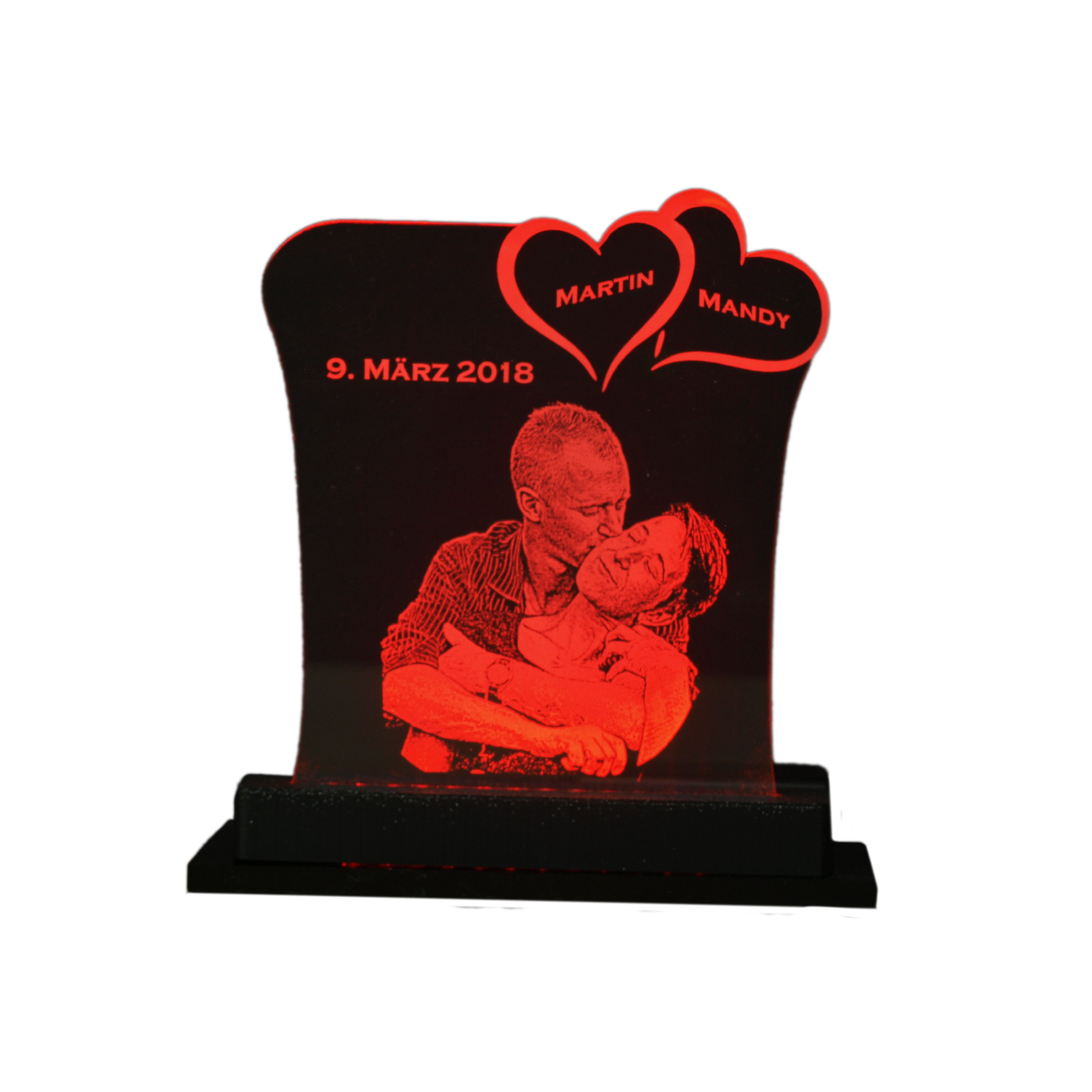 Acrylglas mit Text-/Fotogravur und LED-Beleuchtung