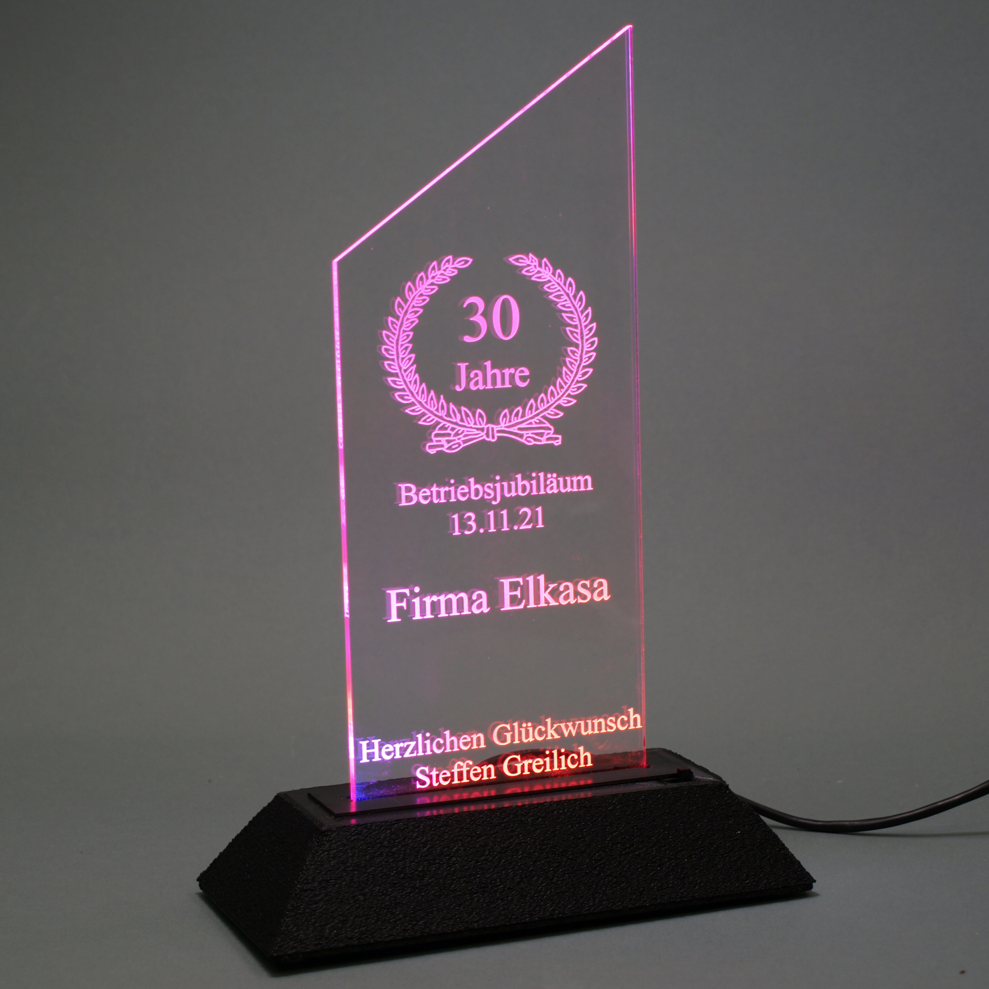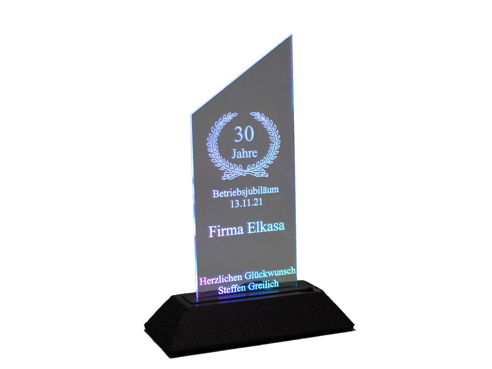 Acryltrophäe mit LED-Beleuchtung und Gravur